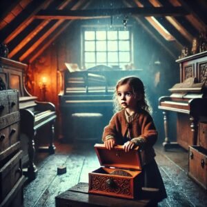 Nina was a young girl with a lot of curiosity who loved to look around her. She was playing in her grandmother’s attic on a rainy afternoon when she came across a dusty old box in a forgotten corner. It had intricate carvings and a small key attached to the side, making it delicate. Nina was tempted to open the box because it sparkled with a hint of mystery.